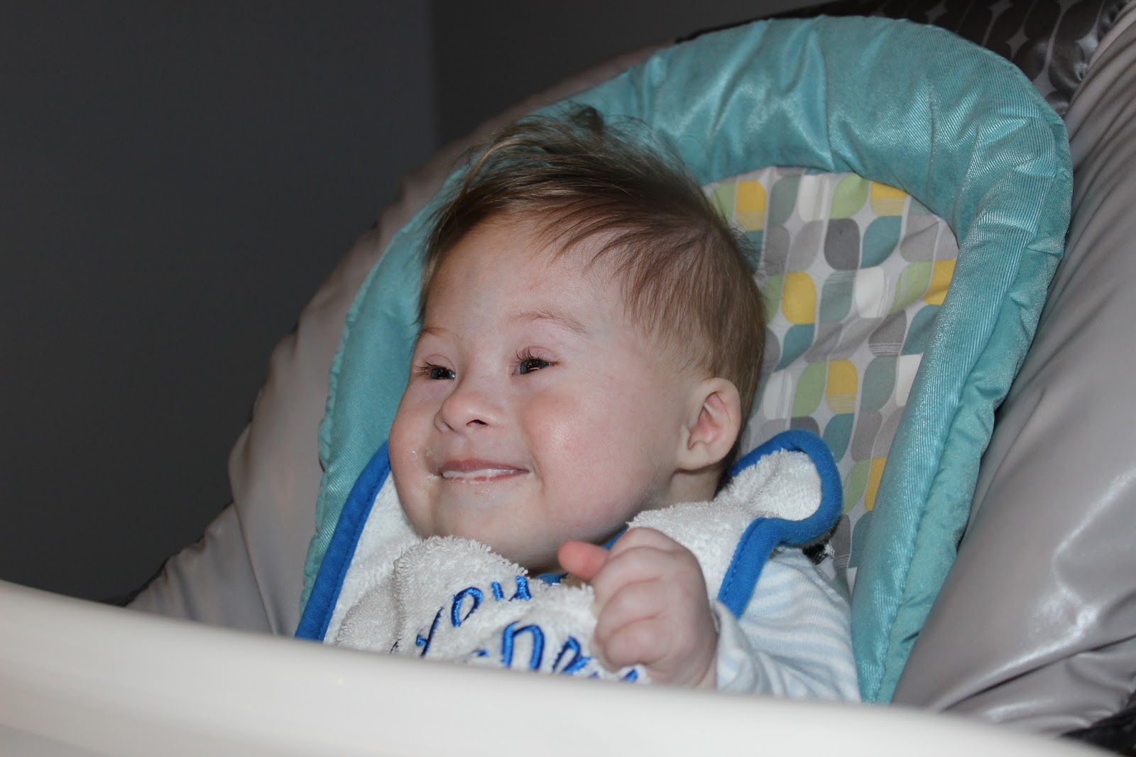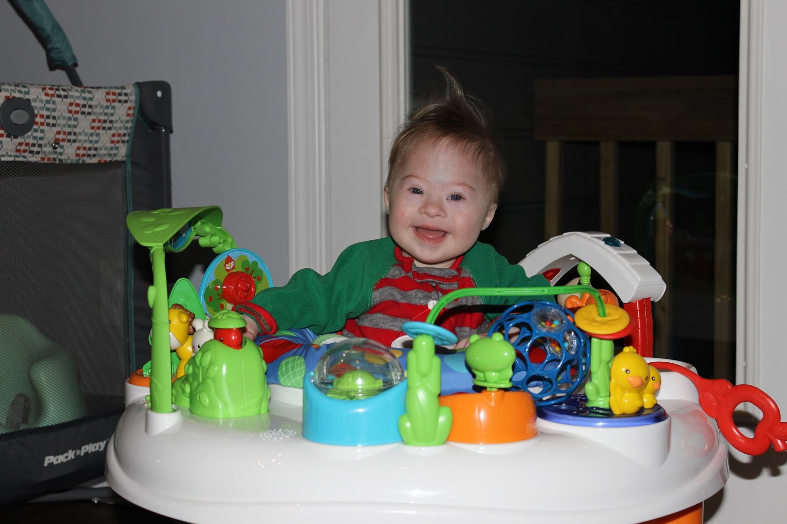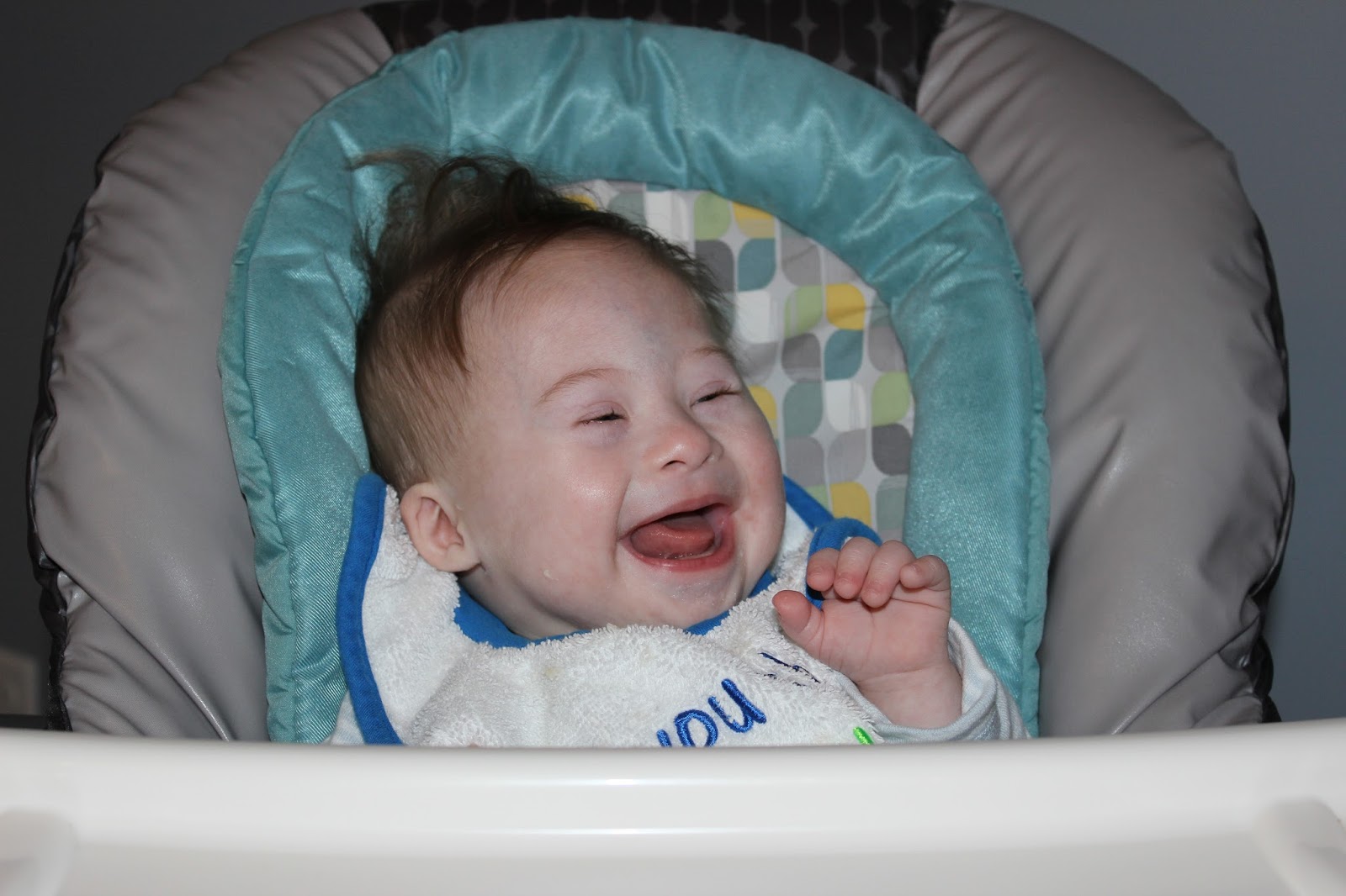 Oliver continues to work very hard on rolling. I am thinking about talking to his doctor about increasing the frequency of his therapy. It is just so hard working full time and committing to more appointments.