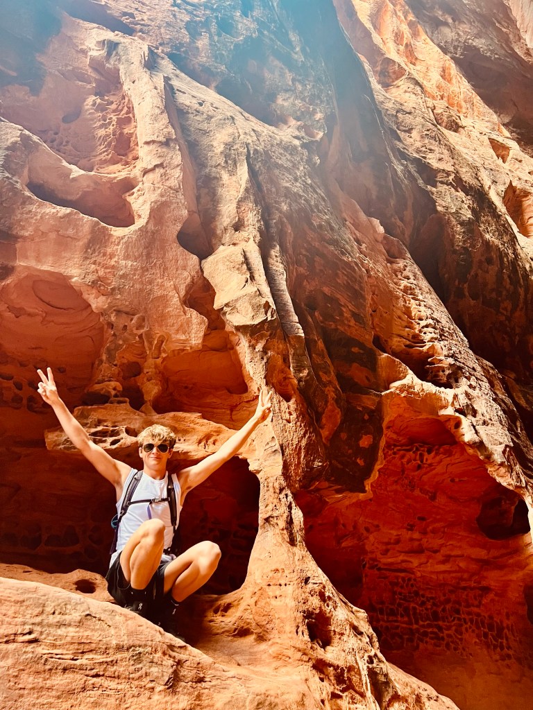 Snow Canyon was beautiful with the petrified sand and sandstone cliffs. We visited Jenny’s Canyon. I never new there were volcanos in Utah! We were able to sit in them to cool down.